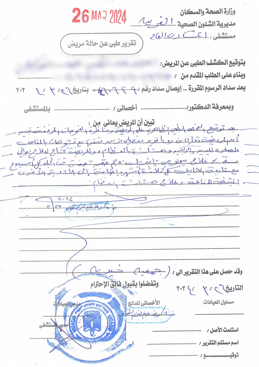 تم بحث الحالة ميدانياً للتأكد من حالتها المرضية ومدى استحقاقها للكفالة العلاجية الشهرية.