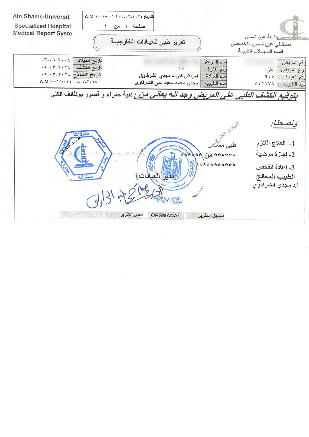 الحالة المرضية والتشخيص